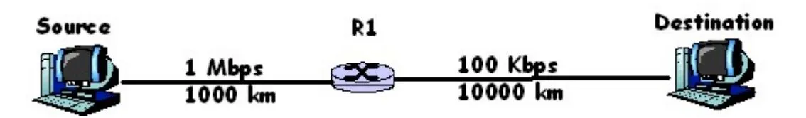 (b) Assume that the source sends 1000 packets each of length 1000 bytes to the destination. How long does it take for the transmission to complete?