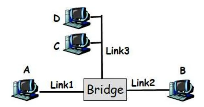 - Bridge has entries for both A and B pointing to L1