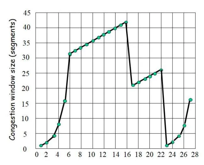 Consider the following plot of TCP window size as a function of time: